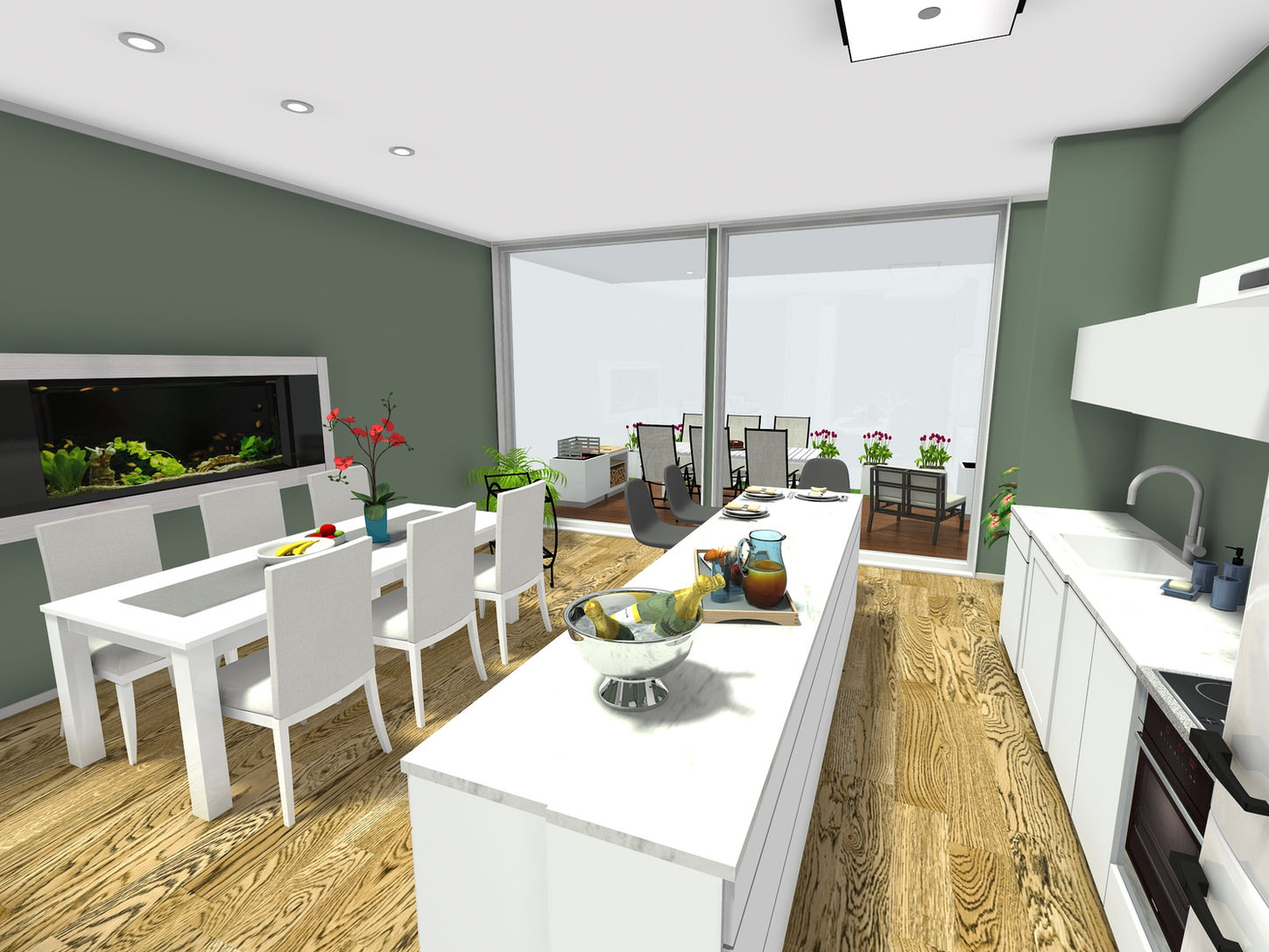 In der unteren Etage dieser Wohnung finden Sie eine geräumige Garage, über welche Sie direkten Zugang zu Ihrem Wohnraum bekommen. Hier finden Sie eine schöne Garderobe, ein modernes Badezimmer, eine Hobbywerkstatt oder Hauswirtschaftsraum mit Waschmaschinenanschluss und einem Abstellraum. Über eine Treppe oder auf Wunsch über einen Aufzug, gelangen Sie zu dem Koch – und Essbereich. Dies ist zweifelsfrei der gemütliche Mittelpunkt der Wohnung mit einer Fläche von ca. 38 m² und angrenzender großer Terrasse mit einer Fläche von ca. 23m². Die oberste Etage ist ebenfalls besonders stilvoll geschnitten und verfügt über einen ca. 46 m² großen Wohnbereich, zwei Schlafzimmer und ein modernes Tageslichtbad mit ebenerdiger Dusche, freistehender Badewanne, Doppelwaschbecken und Bidet. Über den großzügigen Wohnbereich gelangen Sie zu einem weiteren Balkon.